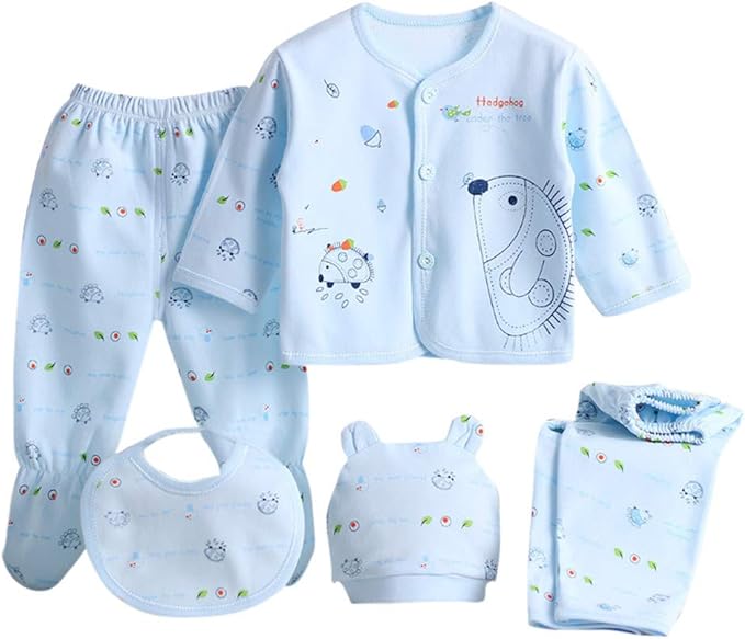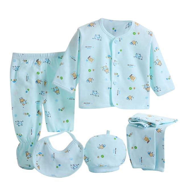 New 5 Pcs Cotton Newborn Baby Clothes Sets 0 3 Month Boy Girls Sleepwear Pants 3 Colors