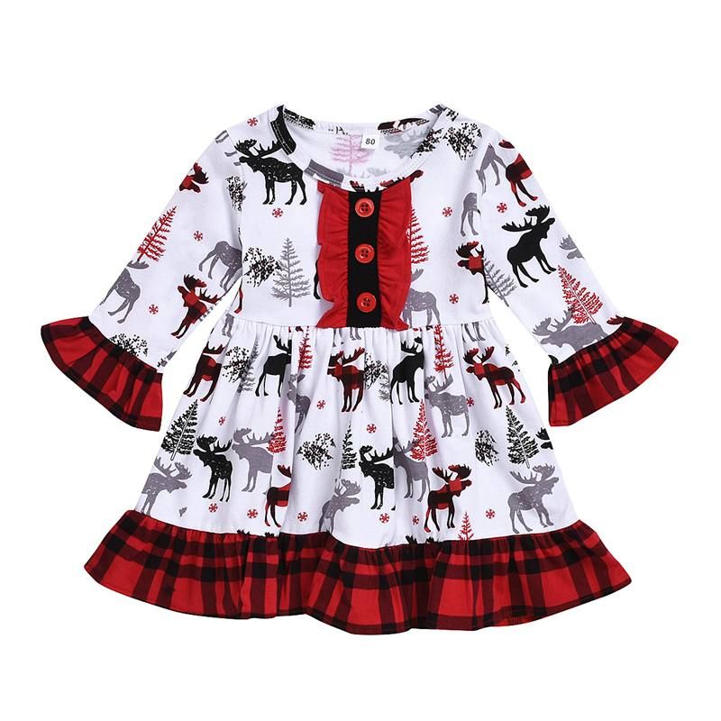 2019 Xmas Ins Christmas Dresses Baby Girl Christmas Dress Girls Christmas Tree Deer Print Dress Children Girls Cute Boutique Dress From Melee 6 84