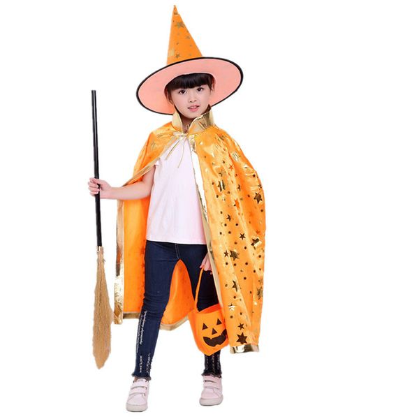 Kids Adult Children Halloween Baby Wizard Witch Cloak Cape Robe Hat Set Hat For Halloween Costume Party Accessory
