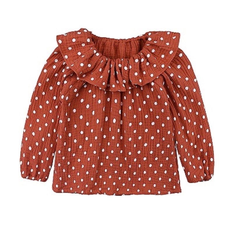 Todder Baby Girls Dot Shirts Ruffled Collar Baby Tops Princess Blouse Clothes Fashion Set