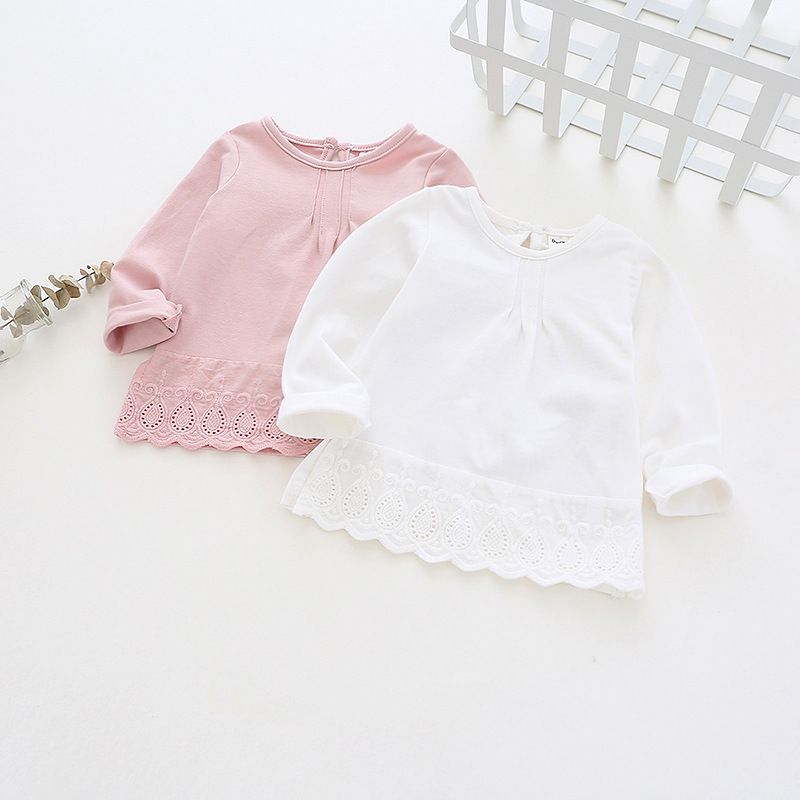 2019 Baby Girl Kids Clothing T Shirt 100 Cotton O Neck Long Sleeve Girl T Shirt Solid Color With Hollow Out Lace Design Girl Spring Fall T Shirt From