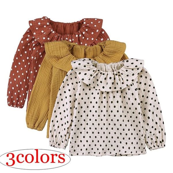 Toddler Baby Girl Shirt 2019 Spring Autumn Long Sleeve T Shirt Kids Infant Peter Pan Collar Tops Cotton Linen Girls Blouse Dot Baby Outfits Childrens