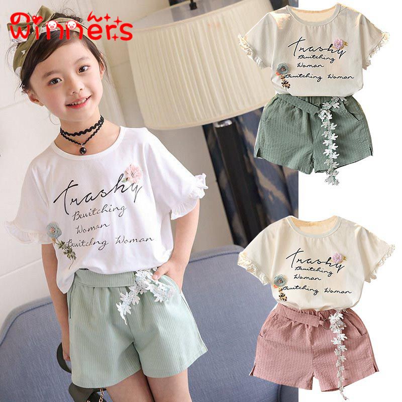 Us 6 36 9 Off Stylish Summer Little Girls Blouse Clothing Set Kids Baby Girl Outfits Clothes Short Sleeve T Shirt Tops Shorts 2pcs Clothes Set In