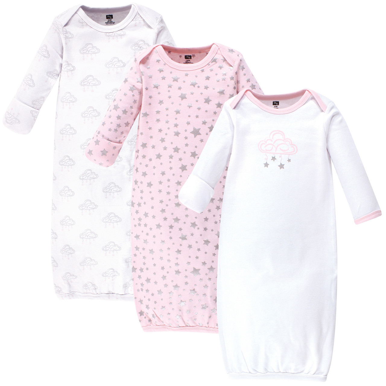 Hudson Baby Girl Gowns 3 Pack Cloud Mobile Pink