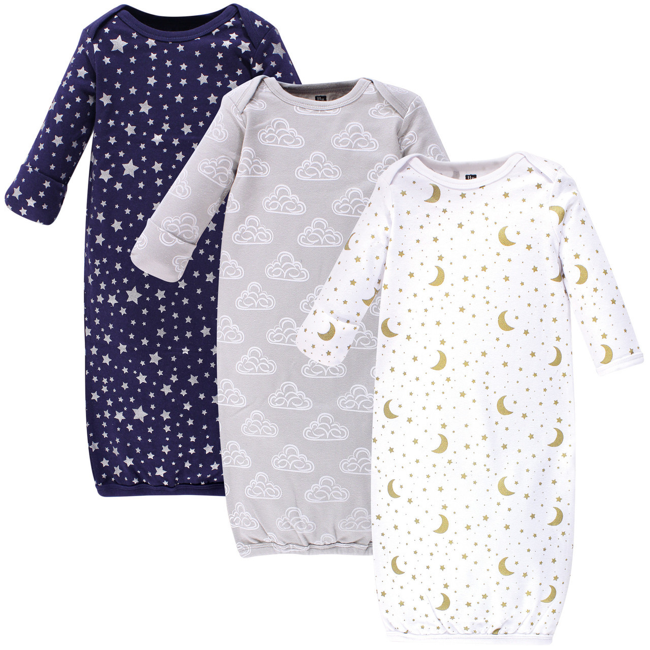 Hudson Baby Boy And Girl Gowns 3 Pack Navy Stars Moon