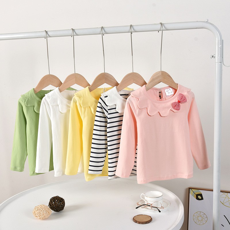 Baby Girl Long Sleeve T Shirts Kids Striped Solid Color Bowknot Design Tops Tees
