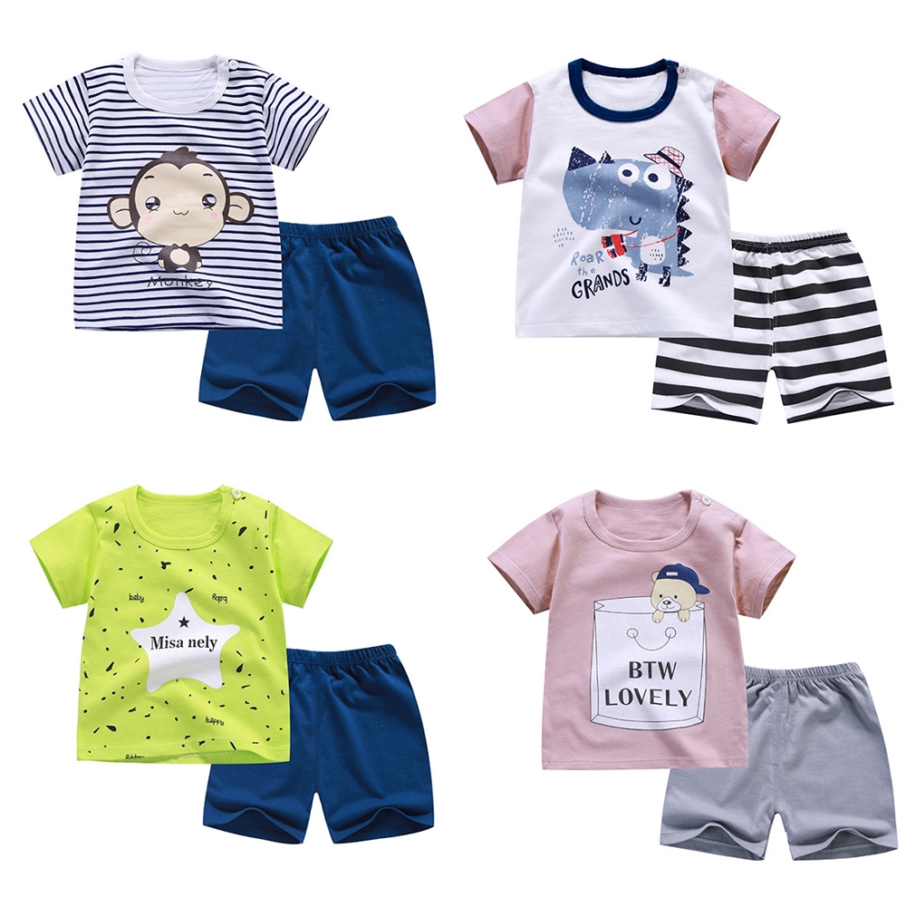 Kids Apparel Summer Children Girls Baby Set Casual Cartoon T Shirt Shorts Suit Boys Terno For Kids