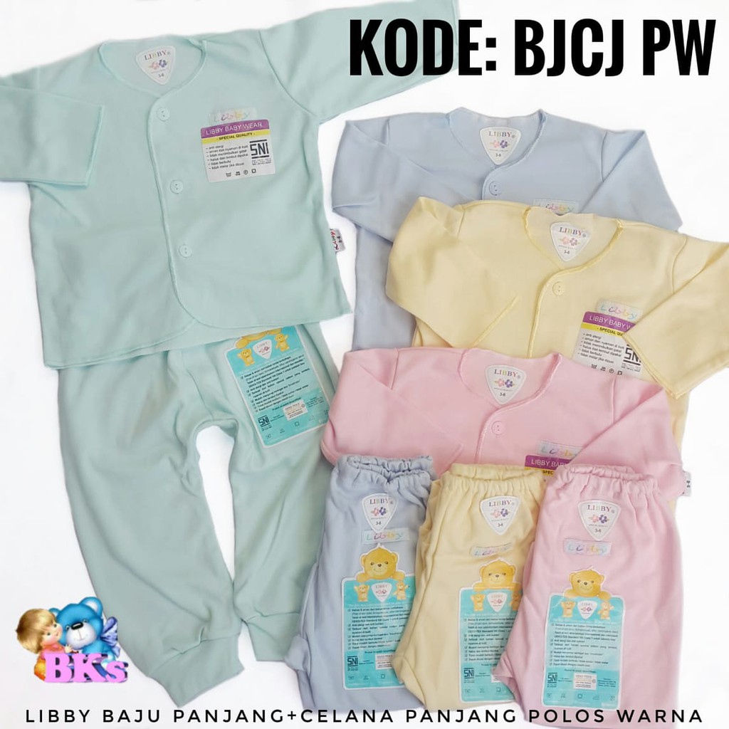 Libby Baby Wear Stelan Baju Panjang Celana Panjang Polos Warna Size Baby 3 6bulan Libby Piyama 3 6m