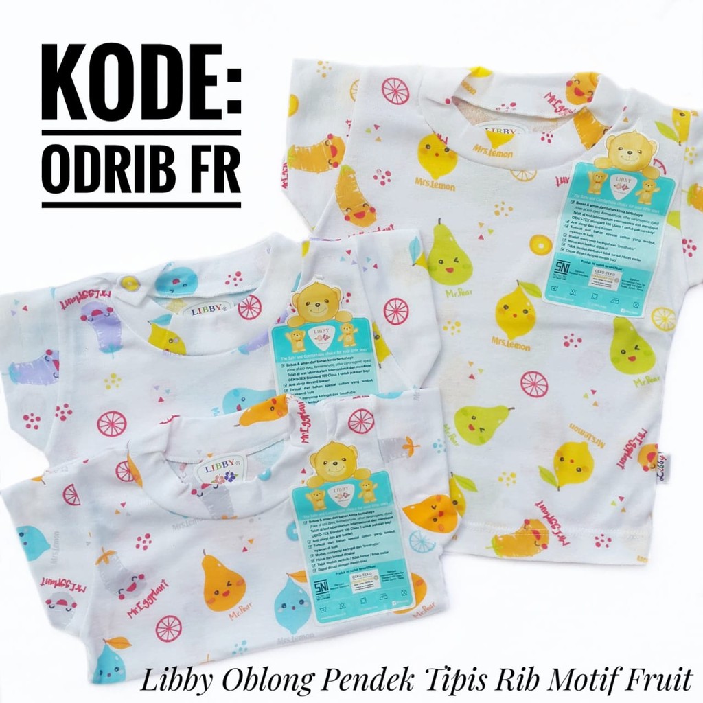 Libby Baby Wear Oblong Pendek Tipis Rib Print Gambar Per 3 Pcs Size S M L Kaos Oblong Anak