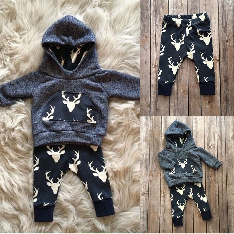 Newborn Baby Boys Girls Warm Outfits Deer T Shirt Hoodie Top Pant Leggings 2pcs